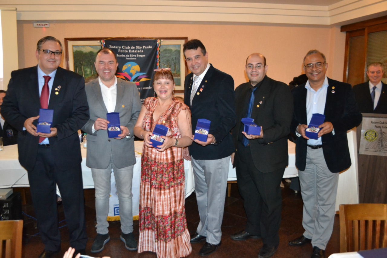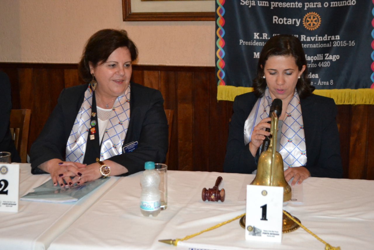 Na sequência das atividades protocolares, durante a reunião festiva, a presidente Sandra, ladeada pela governadora, deu posse aos três novos companheiros Carlos Benassi, Ricardo Campbell e Márcio Garcia, que chegam ao clube, motivados pelo ideal de servir.