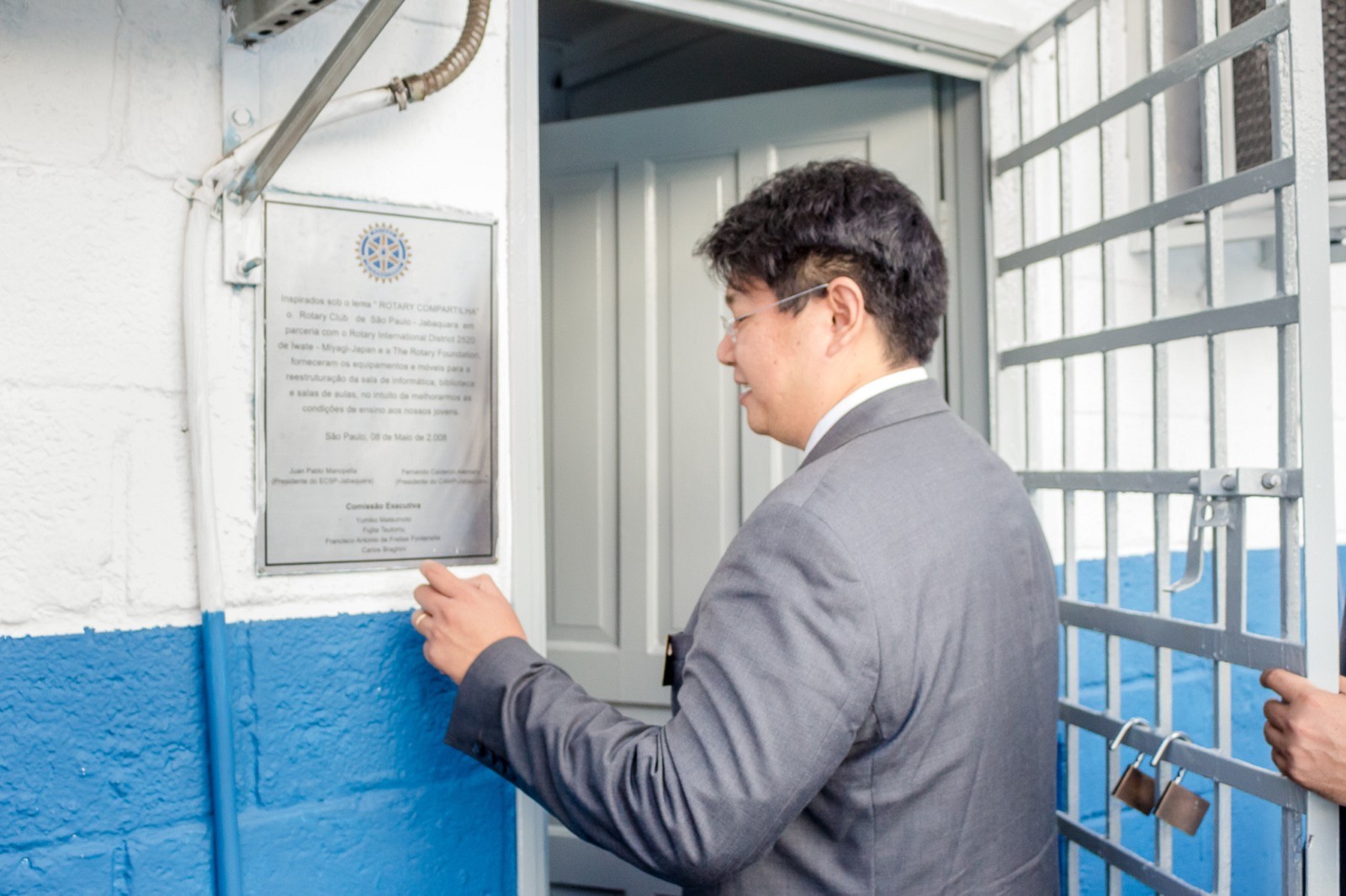 O governador foi conhecer um projeto desenvolvido pelo clube. O início da visita aconteceu no CAMP Jabaquara. O casal foi recebido pela governadora assistente da área 4, Sandra Borges, acompanhada pelo presidente do clube, Marcio José Garcia Alves, pelo presidente da entidade, Fernando Calderon, junto ao gestor Daniel e alguns professores, além de alguns associados e equipe rotária.