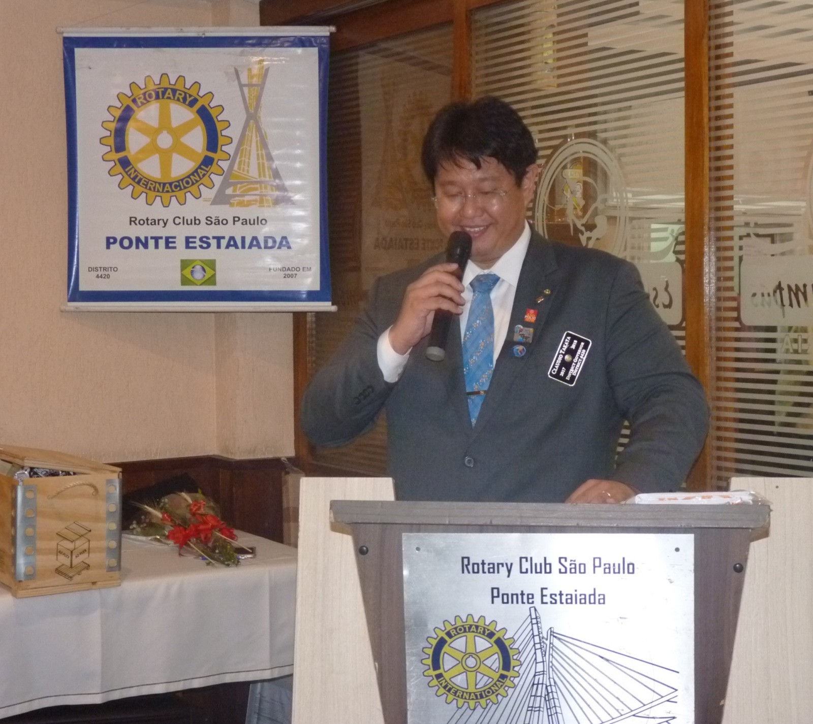 Na tarde do dia 01 de fevereiro, o Rotary Club São Paulo Ponte Estaiada recebeu a visita oficial do governador do Distrito 4420, Claudio Takata e sua esposa Marie. A festiva foi realizada na Churrascaria Estância dos Pampas, Santo Amaro, em São Paulo. O evento reuniu autoridades rotárias, membros da equipe distrital, familiares e amigos.