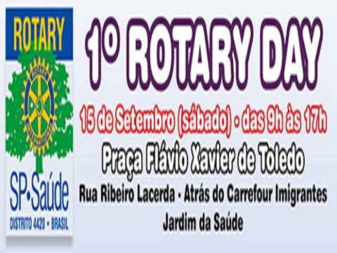 No dia 15, a partir das 9h, o Rotary SP ? Saúde promove o evento comunitário 1º. Rotary Day, com diversas atividades gratuitas para a diversão e lazer de toda a família.
