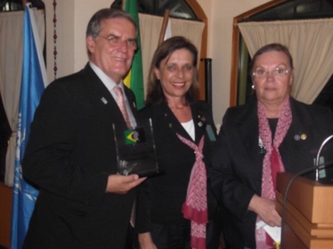 Na foto, o casal com a presidente da Paz Bessie Barros e homenagens que foram destaque na Visita Oficial ao RC de SP Independência.