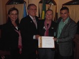 Durante seu discurso,a presidente Bessie aproveitou para homenagear o companheiro Emídio Giacomelli, por sua expressiva contribuição com o crescimento do clube, trazendo novos sócios para servir em Rotary.